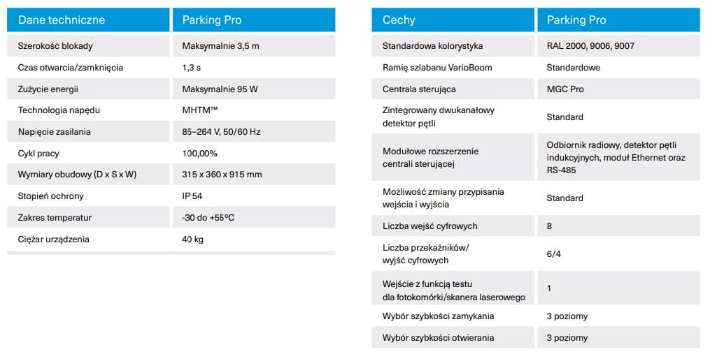 Szlaban Magnetic Parking Pro to pierwszy wybór, gdy potrzebujesz szybkich czasów otwierania i zamykania, łatwej obsługi, bardzo wysokiej niezawodności i wyjątkowo długiej żywotności.